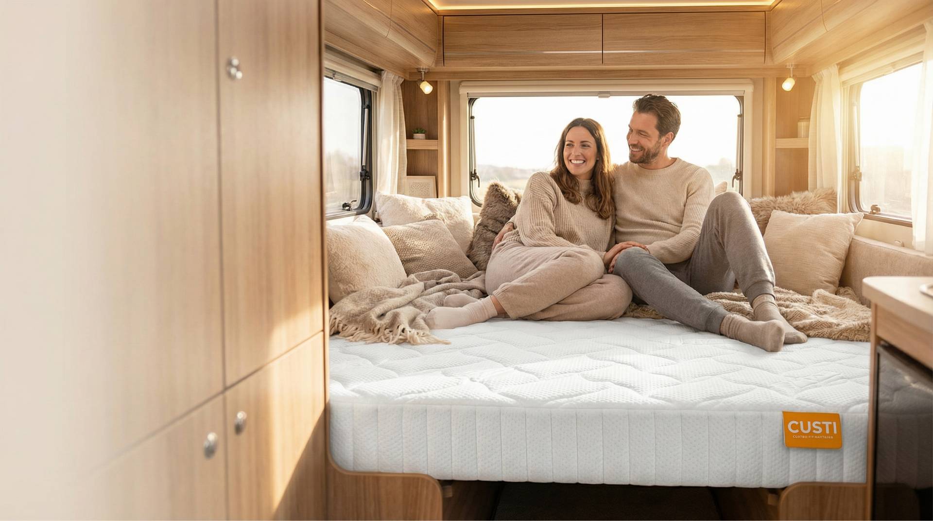 Slaap heerlijk onderweg met een CUSTI matras of topmatras, speciaal voor jouw camper, caravan of vouwwagen.